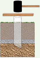 Diagnostic core sampling is similar to other soil profiling techniques, but it does not require any specialized tools or equipment. The core sample is typically collected by the golf course maintenance staff, using a piece of beveled PVC pipe, a hammer, and a piece of lumber (figure 2). Sample collection is achieved by driving the beveled end of the PVC pipe through the green profile until subgrade is penetrated. The pipe is then removed from the soil, packed very tightly, and shipped to the laboratory.
